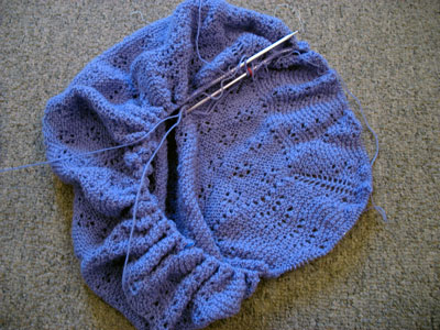 Knitting Experience: The Purl Stitch Sally Melville | TLC Cotton Plus | US 6 | 12" done on back, started raglan shaping |
