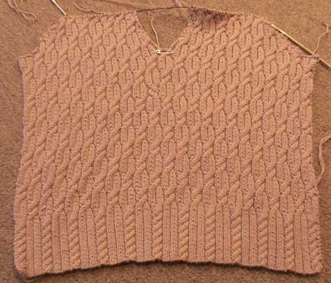 Mason County. I got that far. However, I did underestimate how long this sweater is going to take me to make (I hate when that happens... yet it happens everytime). I should get most of the body finished today with just the hind end decreases to do.