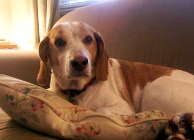 | Tick Tock Tick Tock... the clock is ticking down. In some ways this is good, and in some ways this is bad. Inishmore is painful to work on. I'm tired of it, yet I want to get it done. Every row is tortureous and I didn't get much done on it yesterday. There aren't many days left in October... then I remember, hey, this is a self imposed deadline, and if I go into November to finish it, then I go into November. In other ways, the clock can't go fast enough. I got the Official Xbox Magazine yesterday with their review of Halo 2 and I'm unbelievably excited about November 9th. I don't think there's been a more anticipated game here in the States... (probably similar to any Final Fantasy release in Japan). Matt and I are already talking "strategy" on how we're goint to play it. I don't want to play it during the day by myself. It's something we'll want to share. Not a lot of pics today (I'm sure Emma meant "knitting pics" in my comments from yesterday), but I don't really have much to share... so let's do the Monday Morning Pet Pics that I was too lazy to deal with yesterday. |