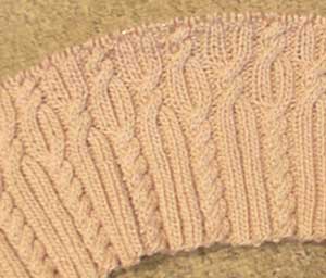 | Damn, if it wasn't right. It's perfect gauge (but a warning to anyone who wants to knit this: it seems huge until you have several cables rows done, those cables really draw the fabric in). The stitch definition is fabulous, it has a lovely drape and it is so soft (the yarn is a cotton/modal blend). Oh, and it's machine washable!! *Cromarty is an Alice Starmore design that can be found in The Celtic Collection. This book is no longer in print, but some places still have copies available (The Needle Arts Bookshop, for example). Remember that I do not copy patterns, so don't ask me to email or send you a copy of the pattern. |