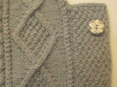 | The first sleeve is done n the Delicate Summer Jacket (no picture) and I went ahead and attatched the shoulders. I considered doing the neck bands before attatching the sleeves, but I'm going to look at the directions first. I think I do the bottom lace border before I put on the bands... Anyway, it made me think about my buttons (I normally like to have my buttons picked out before I do the bands so if I use a smaller/larger button I can adjust the size of my holes). For someone that has sewn my entire life, grew up in a fabric store and been a complete fabric and yarn hoarder, I actually have a fairly small button collection. I don't hoard buttons. I buy them as I need them. So there wasn't anything in my collection that I was happy with for the DSJ.... but I also was thinking about the Cropped Cardigan Redux, as I'm on the sleeves for that one too. Here's what I found: |