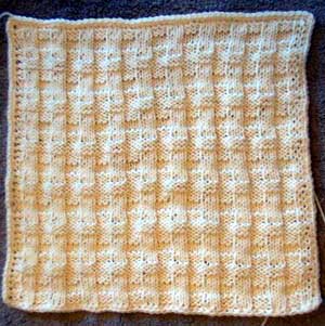 | This one the Harris Tweed Block and it didn't really want to photograph this morning (it's so humid out, that everything seems "gray"). So I think that's 12 blocks done? This is great short attention span knitting. These blocks are all pretty simple (and most are easily memorized). It's great morning knitting while I have my coffee and watch SportsCenter. So the goal for today is to start the first sleeve for the Delicate Summer Jacket. I hope the sleeves go as quickly as the rest of the project has so far (ooops, I bet I jut jinxed myself...) |