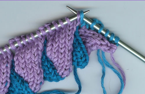 | Here's a close up of the left leaning decrease. You can use a SSK, PSSO or K2tog tbl. Play with the decrease that works best for you. | |||||||||||||||||||||||