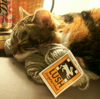 My favorite picture of Kitty. She has excellent taste as the yarn is angora/wool (truely Lush) |