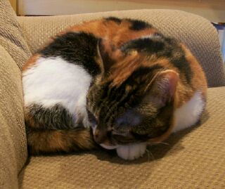 We adopted Kitty fairly soon after we got married. She lived thru 5 moves (not including the little vacation with my parents during the CT to PA move). We lost Kitty to cancer in July of 2003. We had her for a wonderful 11 years. We still have lots of reminders of her around the house... the scratched furniture, the hair ball stains. We do miss her. I still expect to see her nestled into one of my projects while I'm laying them out to measure. |